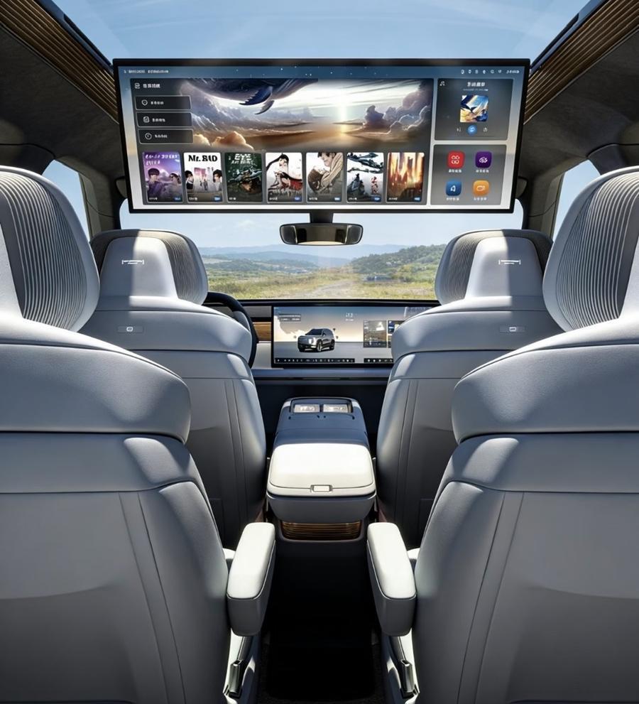 乘用性表现方面,ID. ERA 9X的具体长宽高分别为5207mm/1997mm/1810mm,轴距为3070mm,并采用大六座布局结构。作为一款大型SUV,这样的尺寸编排,也足够带来相对充裕的内部空间表现。并且,依照官图显示,其第二排除了会配备两个独立座椅以外,还配备了一块大尺寸吸顶娱乐屏;且其厚重的第一排中央扶手箱内,预计会加入车载冷暖箱。因此,以目前的情况来看,该车应该不会欠缺豪华乘用体验。