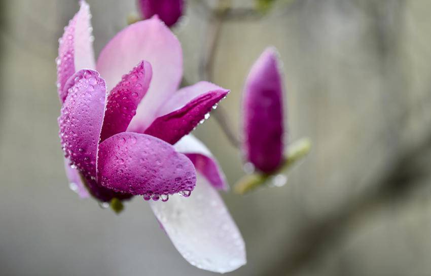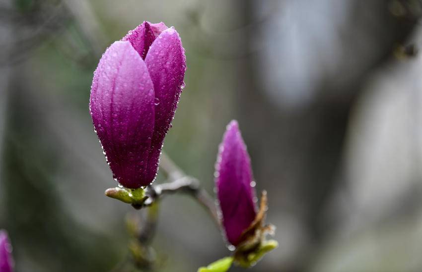 漫步南漳县城区主干道,玉兰树舒展身姿,花瓣厚实温润,紫玉兰娇艳欲滴、白玉兰素雅洁净,晨露附着花瓣更显晶莹。