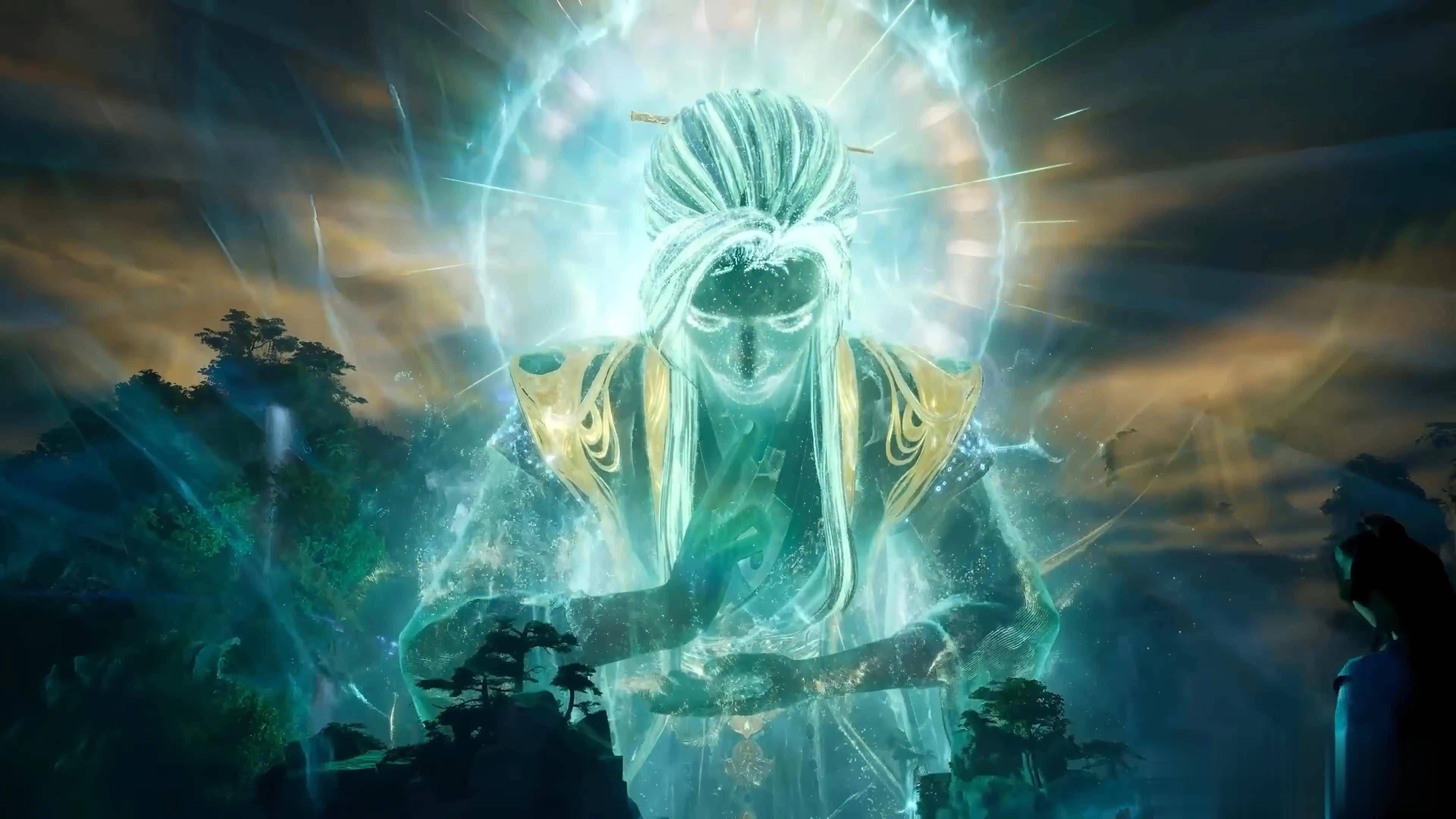 “苍穹裂开,四色巨龙盘旋升腾,红黄蓝青交织如虹,百里之内草木枯荣,低阶修士跪伏难起!”